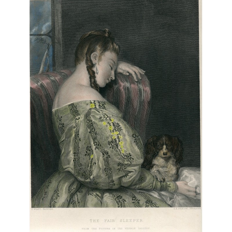 Título: The Fair Sleeper Grabador: GA Periam Artista: a partir de obra de H. Wyatt (1794-1840) Fecha: 1851 Publicado por: Virtue & Co Materiales: Aguafuerte y grabado. Tamaño: 32x23,3 cm. Estado: en buen estado.Recipiente :