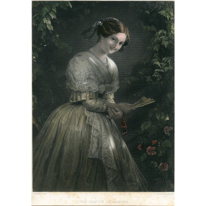 Título: La Belleza de Albano. Artista: a partir de obra de agosto Heinrich Riedel (1799-1883). Grabador: Lumb Stocks (1812-1892). Técnica: aguafuerte/grabado. Fecha de producción: 1857. Estado: Algún manchas que no afecta a la imagen como se puede apreciar en la imagen. Escanee cuidadosamente.Recipiente :