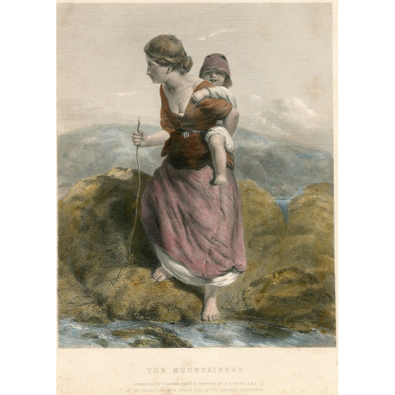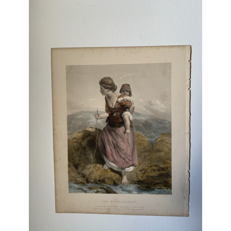 Título: El montañero. Artista: a partir de obra de Paul Falconer Poole (británico, 1807-1879). Grabador: Thomas Garner (17891868). Fecha de producción: 1848. Medidas: 22x17,5 cm. Técnica: aguafuerte y grabado. Condición: signos de aspereza a lo largo de un borde por haberlo quitado de la encuadernación. Algo de manchas como se puede ver en la imagen. Escanee cuidadosamente.Recipiente :