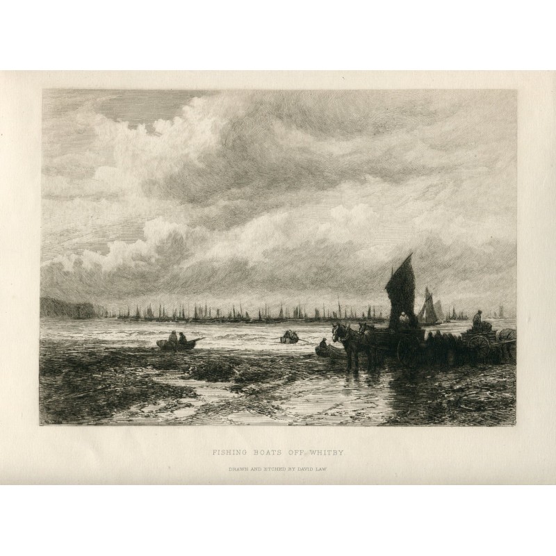 Inglaterra. .Fishing boats off Whitby. dibujado y grabado por David Law