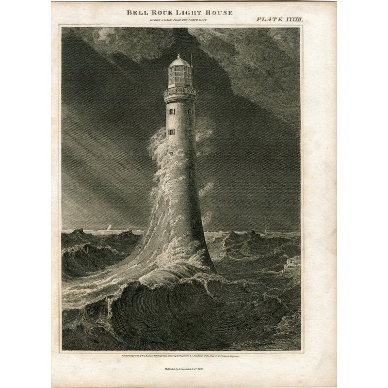 Escocia. Bell Rock light house. Dibujado y grabado por Lizars sobre obra de W. Lorimer en 1816