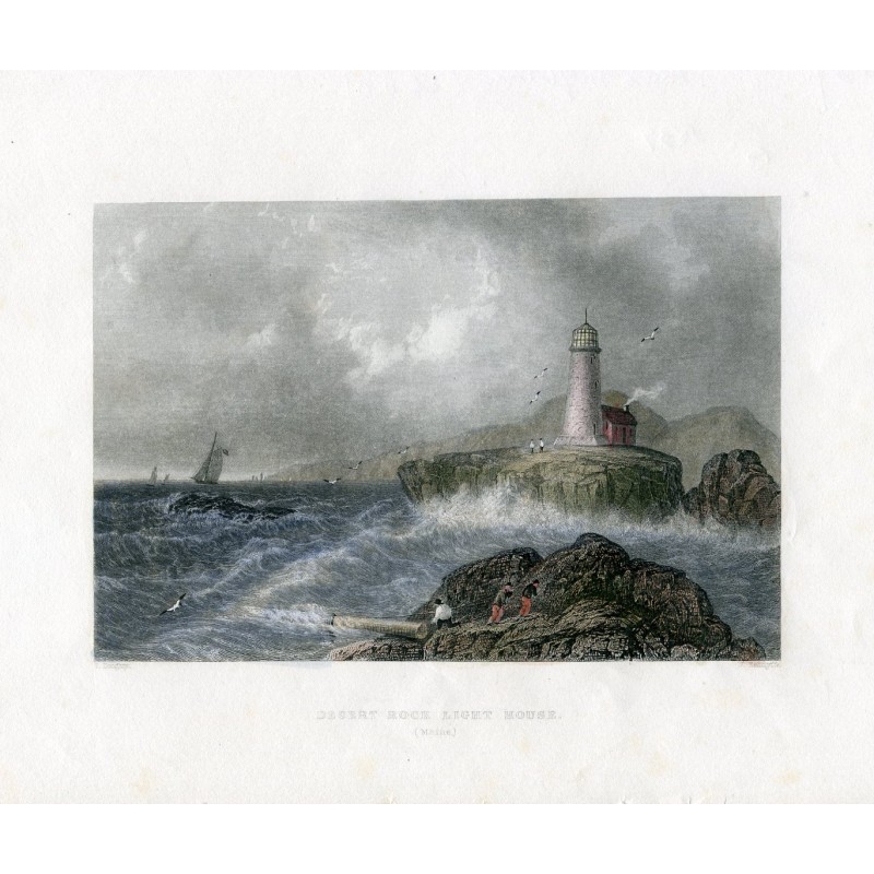 Estados Unidos. Nueva Inglaterra. Desert Rock Lighthouse. grabado por W. Radcliffe