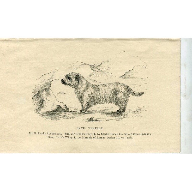 Grabado del perro Skye Terrier 1890. Medidas: 13,5x21 cms.Recipiente :