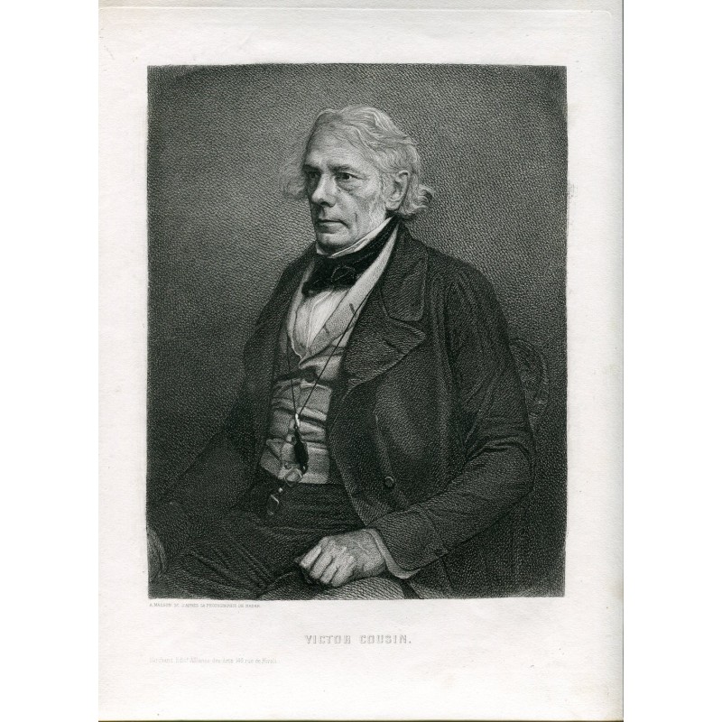 Victor Cousin (1782-1867) filosofo y escritor frances, grabado copia de una fotografia de Nadar por A. Masson. Medidas: 32,5x24 cms.Recipiente :