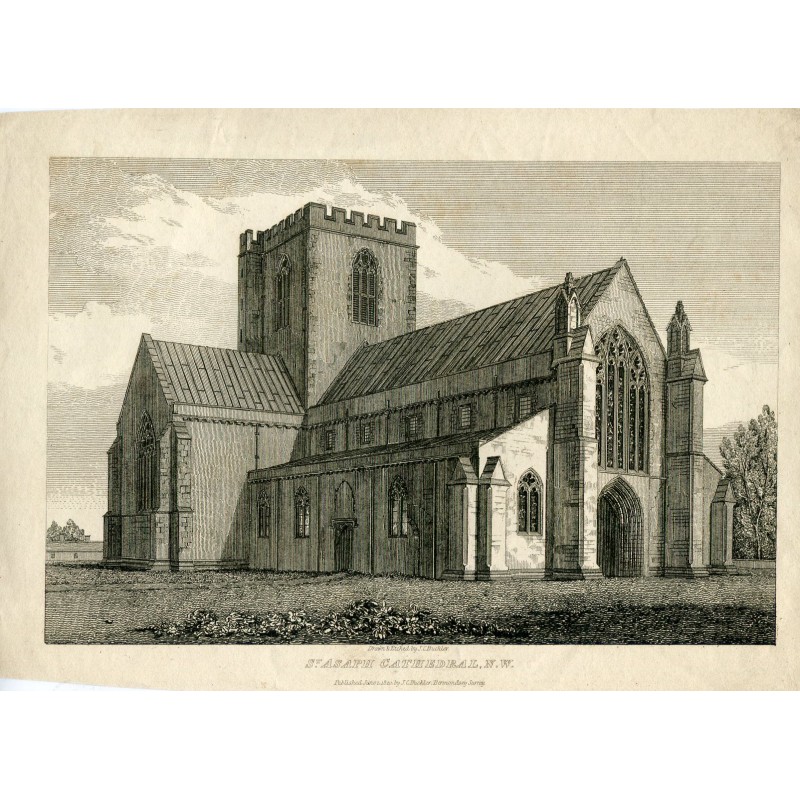 Grabado de St. Asaph Cathedral, dibujada y grabada en 1820 por J.C. Buckler en 1820. Medidas: 20,2x28,1 cms.Recipiente :