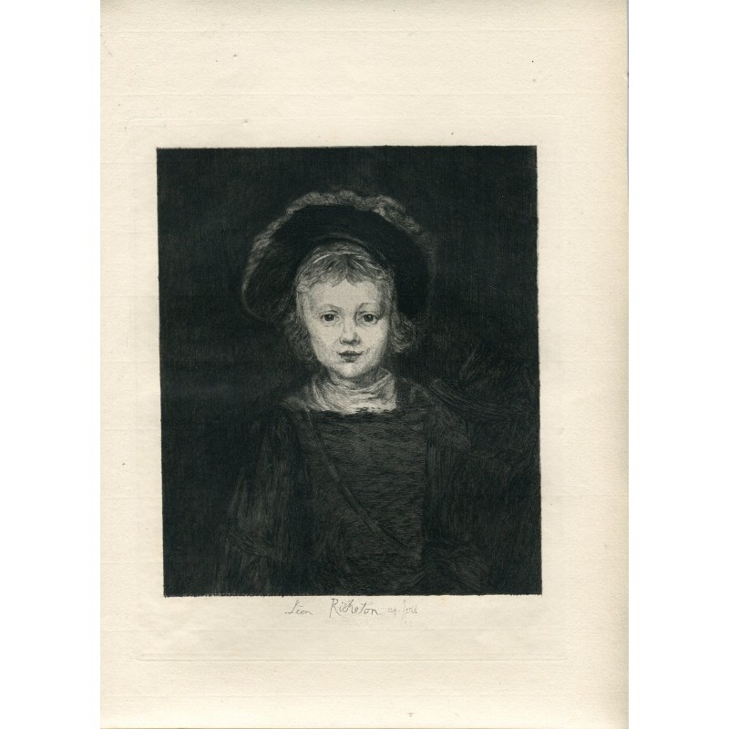 Mezotinta por Leon Richeton (1854-1934) sobre obra de Gainsborouh. Firmado en plancha. Medidas: 35x24 cms.Recipiente :