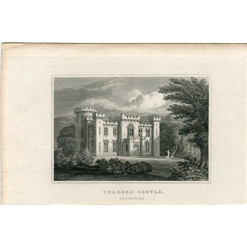 Grabado Culdees Castle, Perthshira, por J. P. Neale en 1831. Medidas imagen: 8,6x12,8 cms.Recipiente :