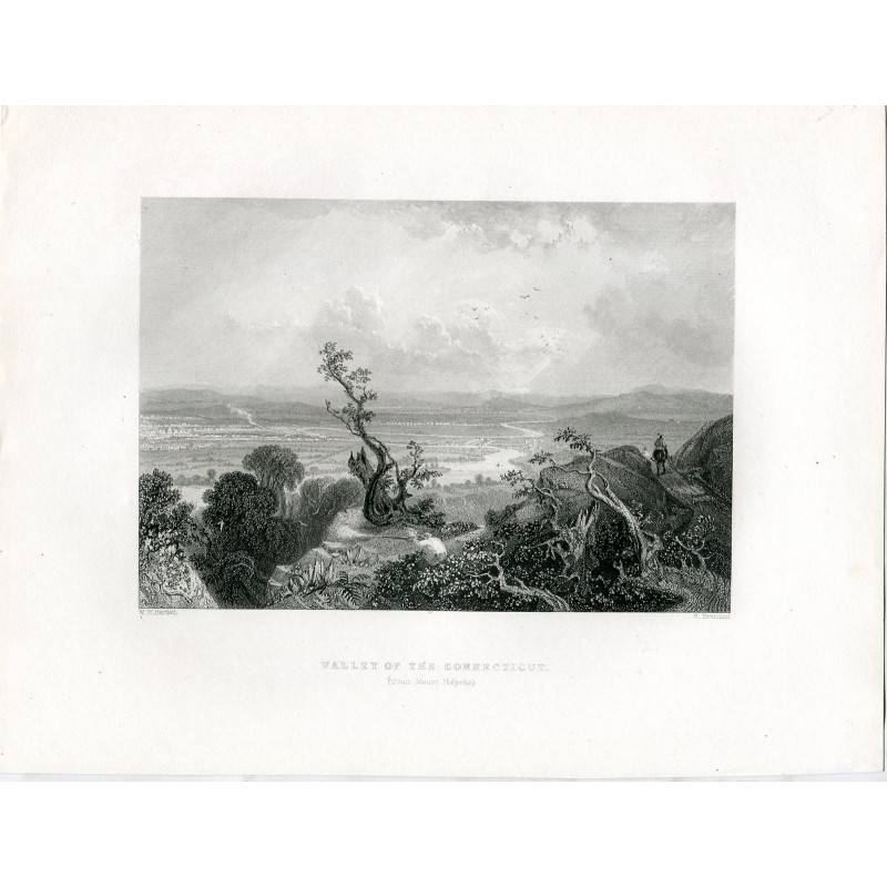 Título: Valle del Connecticut. (desde el monte Holyoke). Artista: a partir de obra de William Henry Bartlett (1809 - 1854). Grabador: Robert Brandard (1805 - 1862). Descripción: acero antiguo grabado sobre papel avitelado. Fecha: 1840. Tamaño de la imagen: 12,5x18,1 cm. Tamaño de la hoja: 20,7x27,1 cm. Estado: bien.Recipiente :