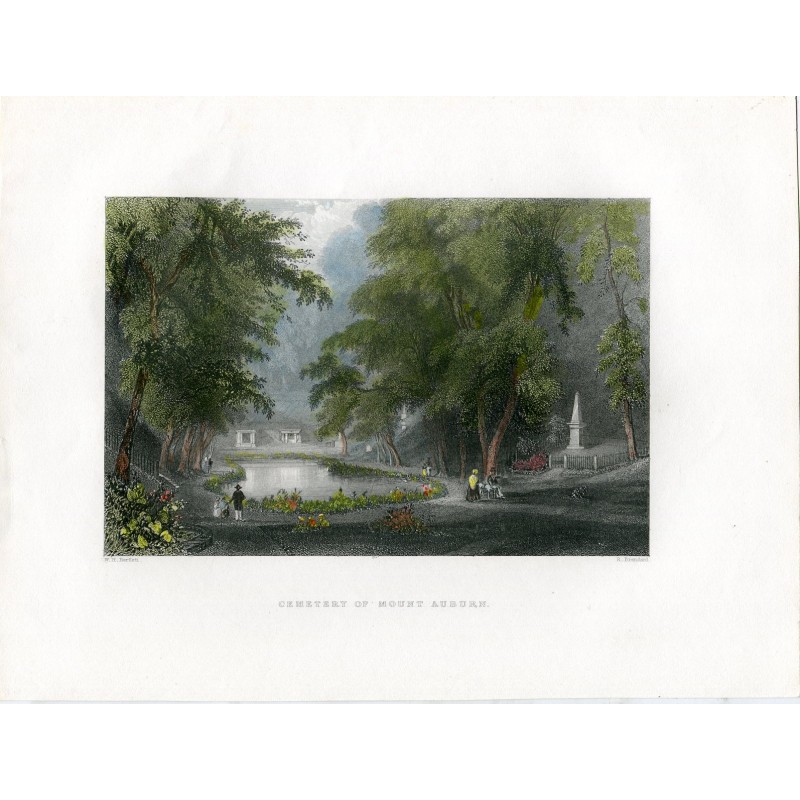 E.E.U.U. Cementery of Mount Auburn, grabado por R. Brandard.