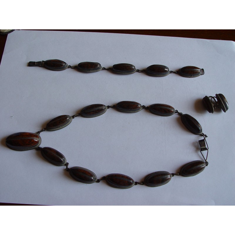 Precioso collar pulsera y pendientes antiguos. 'Necesita limpieza.Recipiente :