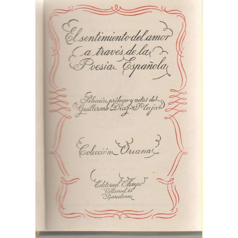 El sentimiento del amor a través de la poesía española prólogo y notas de Guillermo Díaz Plaja.