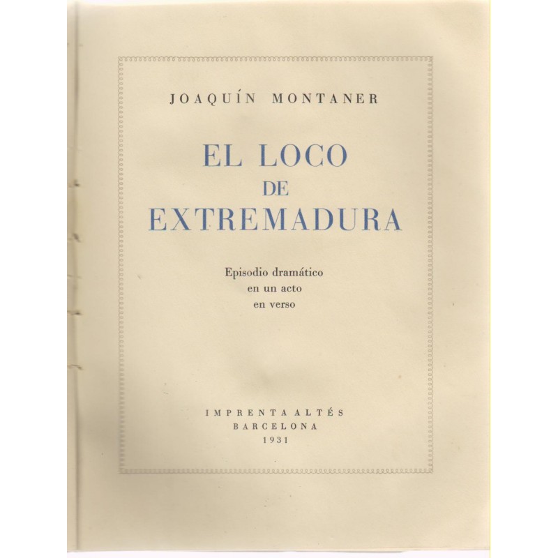 El loco de Extremadura por Joaquín Montaner. Imprenta Altés, Barcelona, 1931