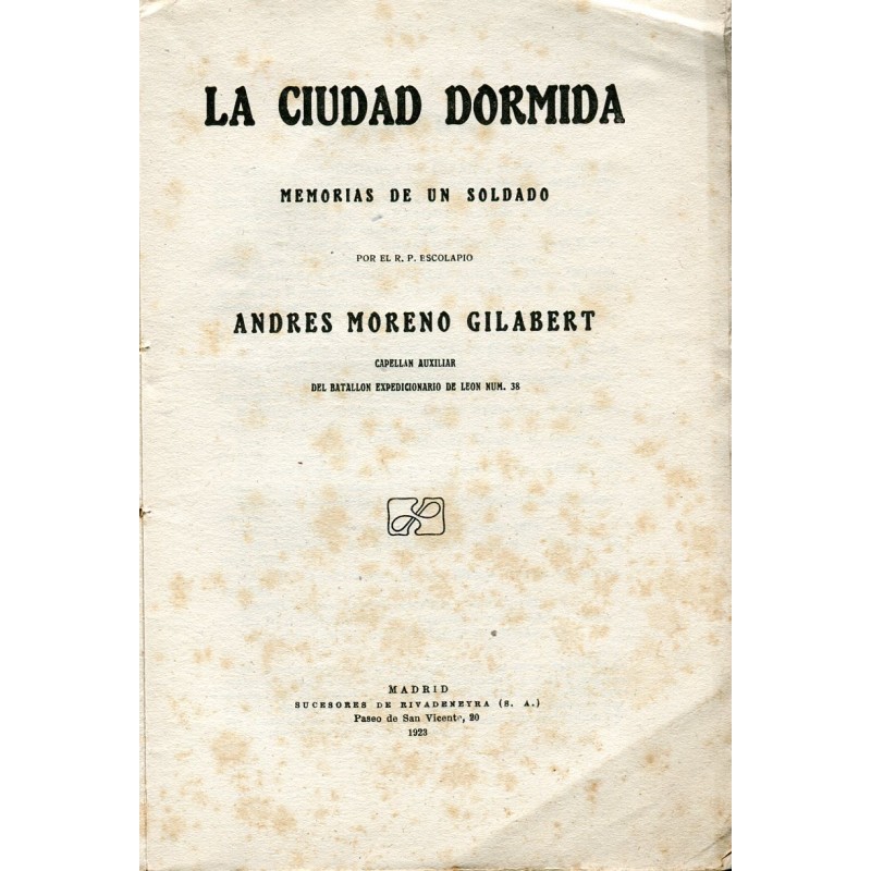 La ciudad dormida, memorias de un soldado por el R. P. Escolapio Andrés Moreno Gilabert año 1923