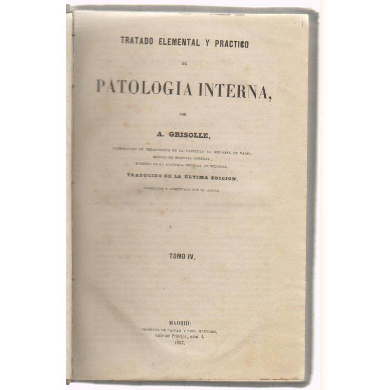 Tratado elemental y práctico de patología interna por A. Grisolle, 1887. 4 tomos