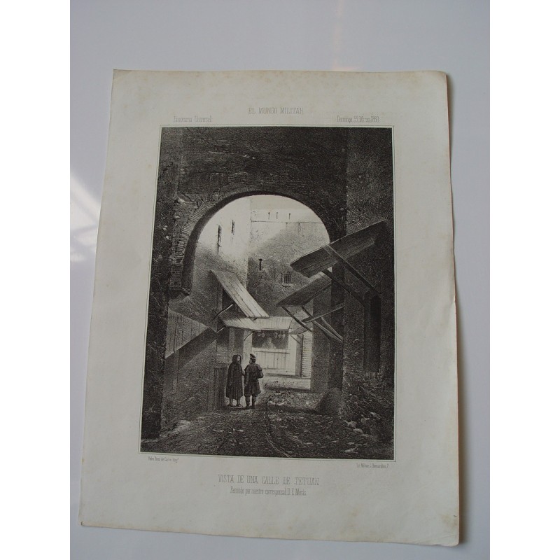 Vista de una calle de Tetuan. 1860. remitida por nuestro correponsal D. E. Merás.