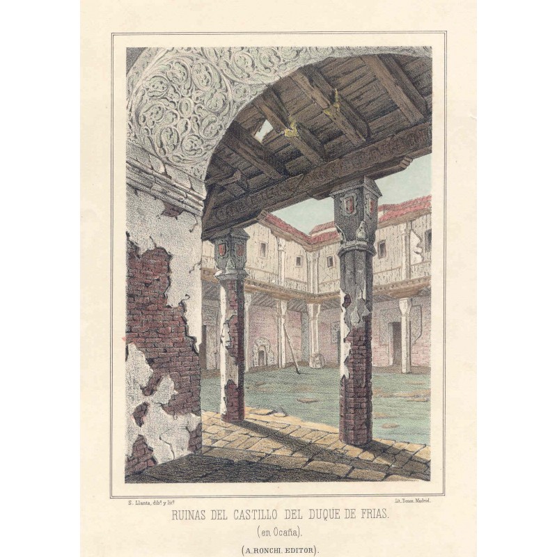 Litografía original del siglo XIX, coloreada. Medidas de la imagen 21,2 x 14,7 cms. Dibujó S. Llanta. Litografió S. Llanta y Donón.Recipiente :