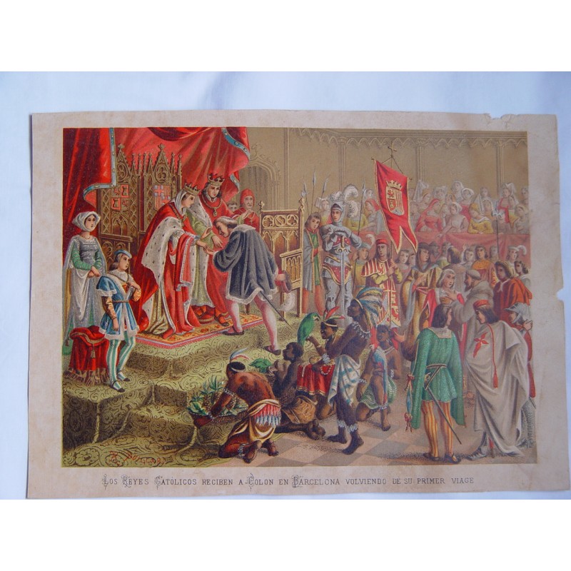 Los Reyes Católicos reciben a Colon en Barcelona volviendo de su primer viaje