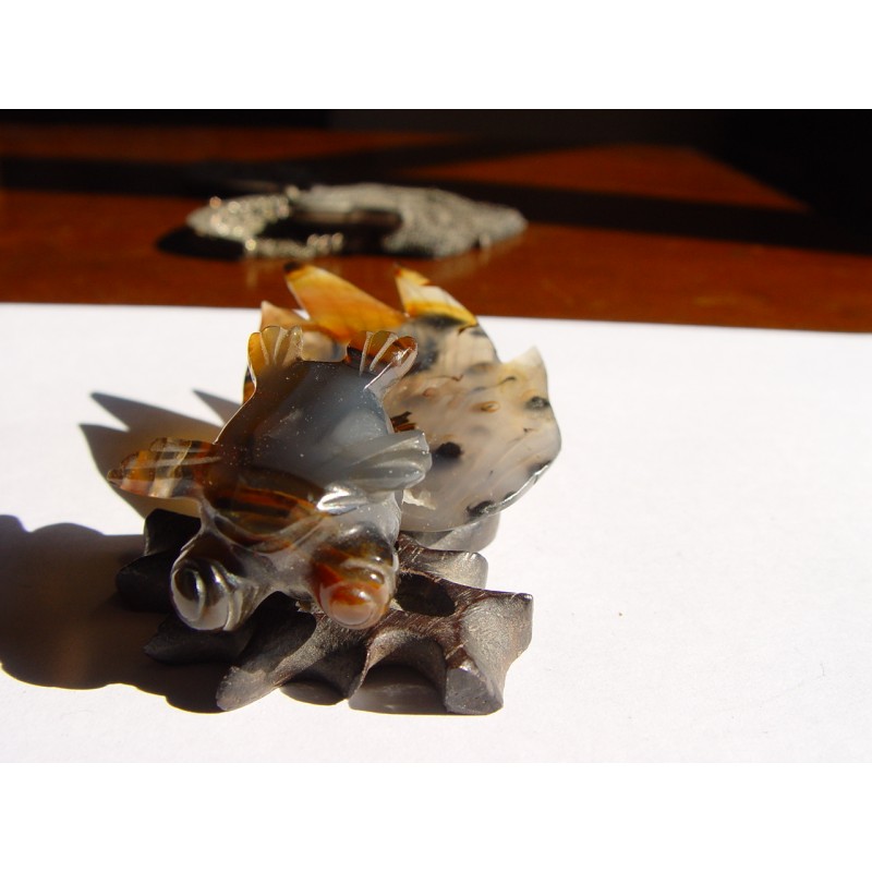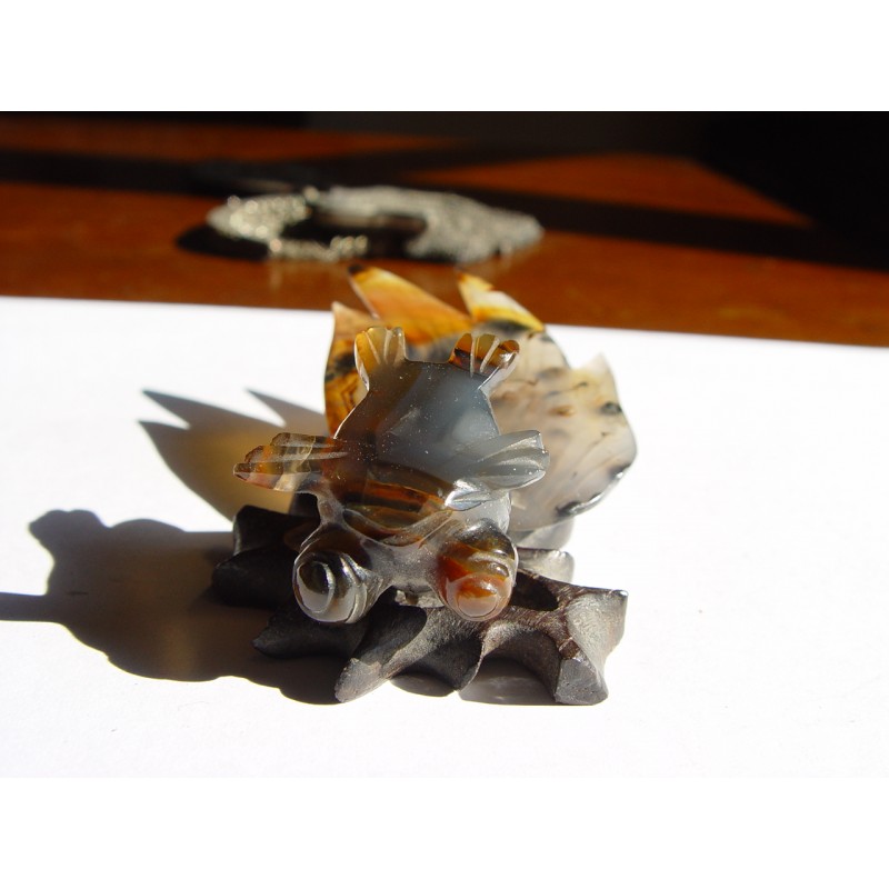 Figura con forma de animal seguramente de jade sobre base de madera.