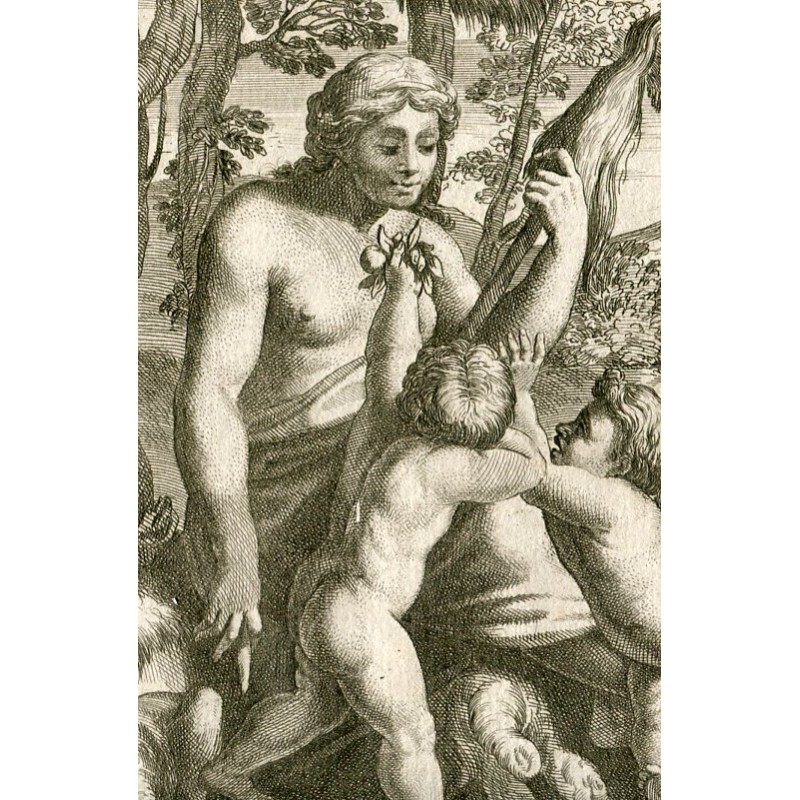 Concepit Heva et peperit Cain Fratre grabado por Cesare Fantetti (Fanctectus) siglo XVII