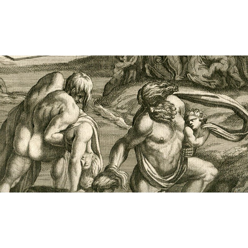 Grabado realizado por Cesar Fantetti, Jacobus de Rubeis, Roma. En la parte inferior esta muy desgastado. Medidas huella: 25x26 cms. Medidas papel: 37x48 cms.Recipiente :