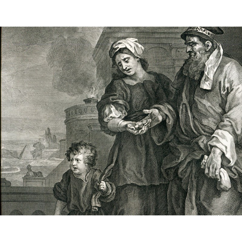 Moisés trajo a la hija del faraón, a partir de obra de Hogarth.