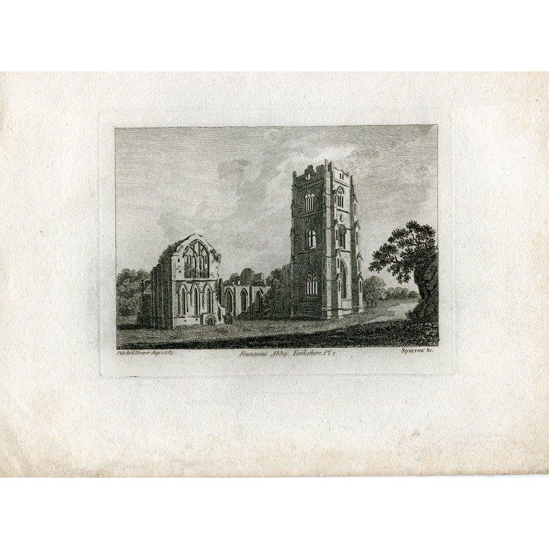 Ingaterra. Fountain Abbey Yorkshire. Grabado por Sparrow en 1785