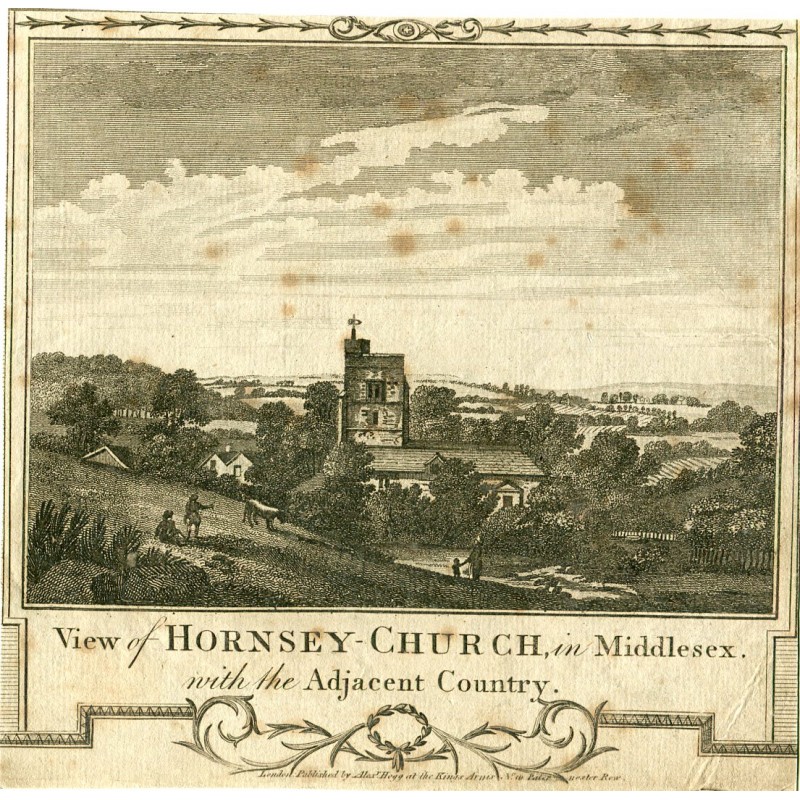 View of Hornsey Church in Middlesex grabado publicado por Alex Hogg en 1780