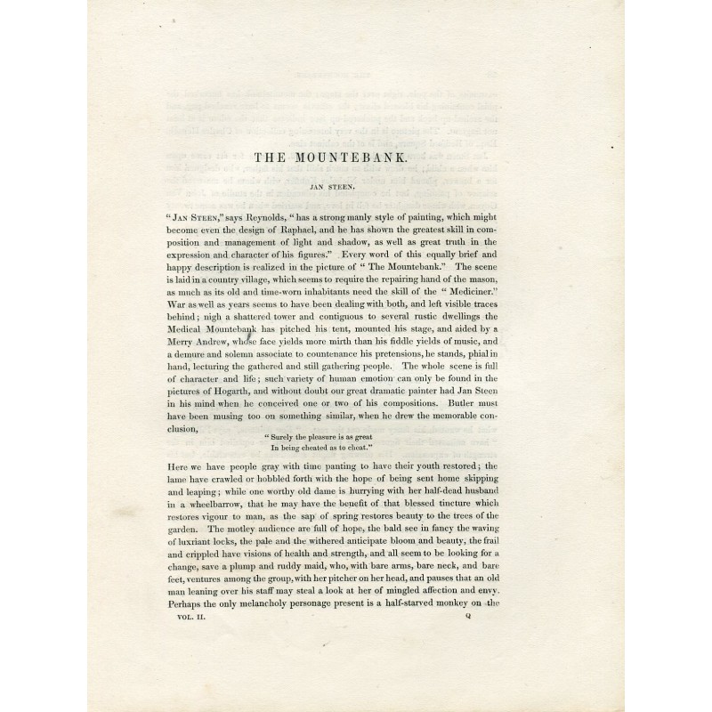 The mountebank grabado por A. Duncam en 1834 sobre obra de Jan Steen. Medidas: 27,4x20,6 cms.Recipiente :