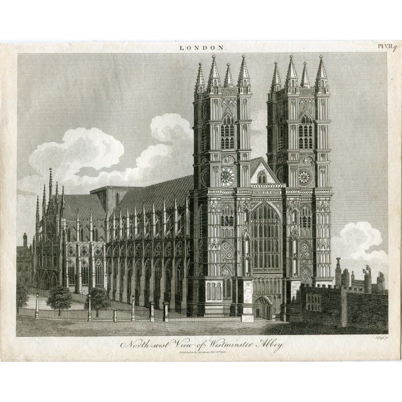 North-west View of Westminster Abbey grabado por J. Pays en 1815. Medidas: 25,8x20,5 cms.Recipiente :
