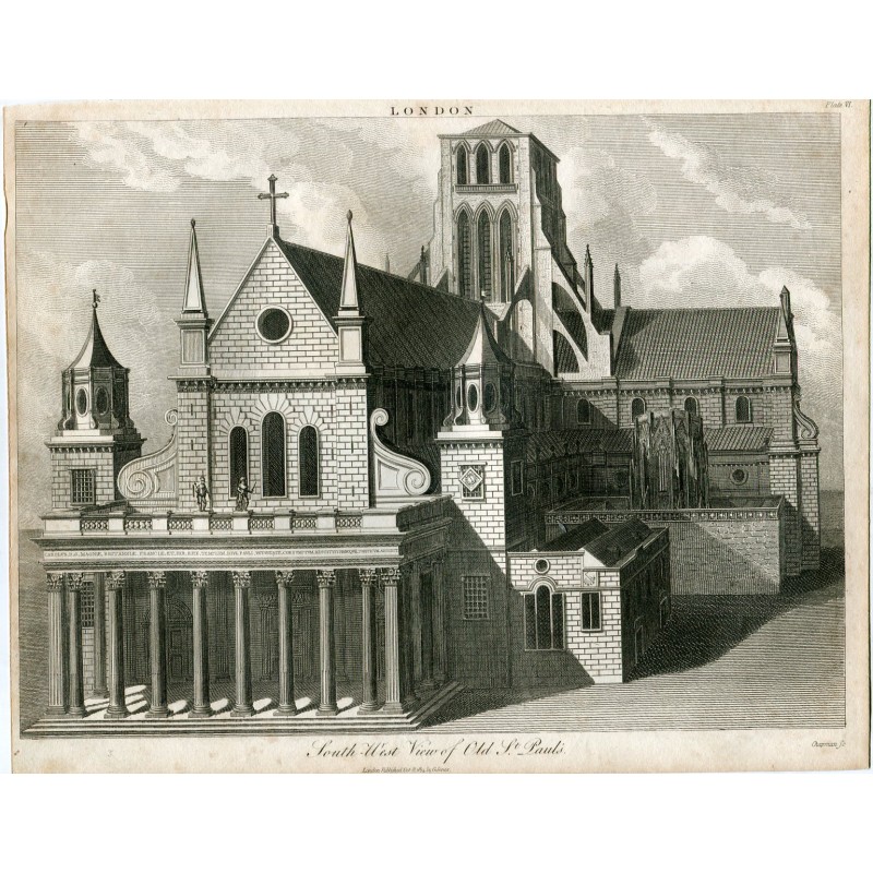 South West view of Old St. Pauls grabado por Chapman