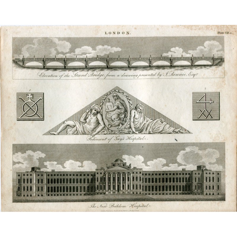 The New Bethlem Hospital y otros grabados por G. Jones en 1814. Medidas: 25,8x20,2 cms.Recipiente :