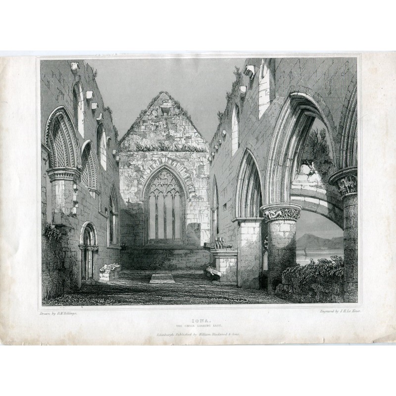 Iona the choir looking east.. Litografia por J.H. le Keux. Dibujó R.W. Billings.