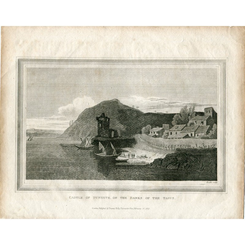 Portugal. Castle of Punhete on the Banks of the Tagus grabado por Heath publicado por Thomas Kelly en 1817
