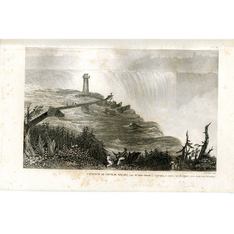 Cataratas de Niagara vistas desde Goat-Islandia. Grabado por Schroeder. Medidas:24,4x16 cms.Recipiente :