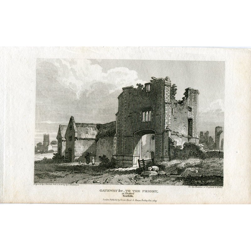 Norfolk. Gateway &. To the Priory at Thetford grabado por J.Burnett