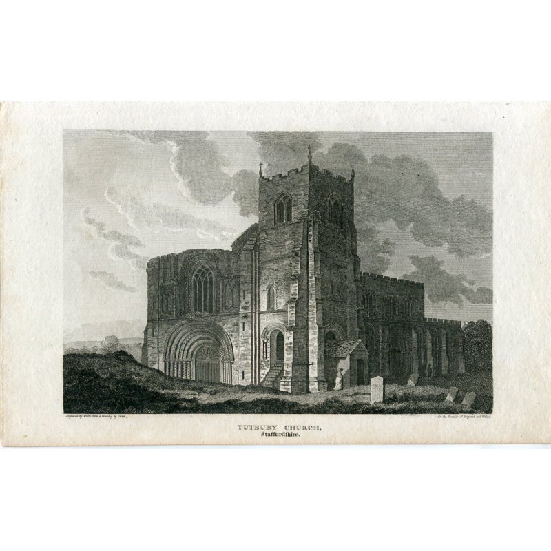Tutbury Church Staffortshire grabado por White. Dibujó Carter.
