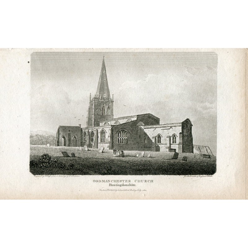 Godmanchester Church en Huntingdonshire grabado en 1804 por R.Roffe. Dibujó R.J.Carraden