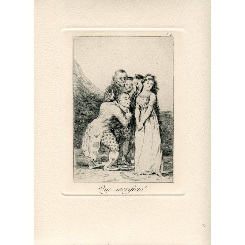 Francisco de Goya y Lucientes. '¡Qué sacrificio!'. Lámina 14 de la serie de grabados Los Caprichos, edición 1970. El papel está filigranado con el sello de la Calcografia Nacional. Tamaño de la plancha: 14,8 x 22 cm. Tamaño del papel: 26,3 x 38 cm.Recipiente :