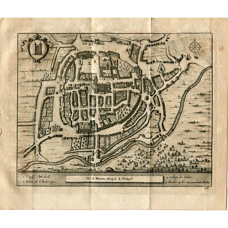 Portugal. Vue de Braga. Metropole du Portugal grabado 1715 de Alvarez de Colmenar