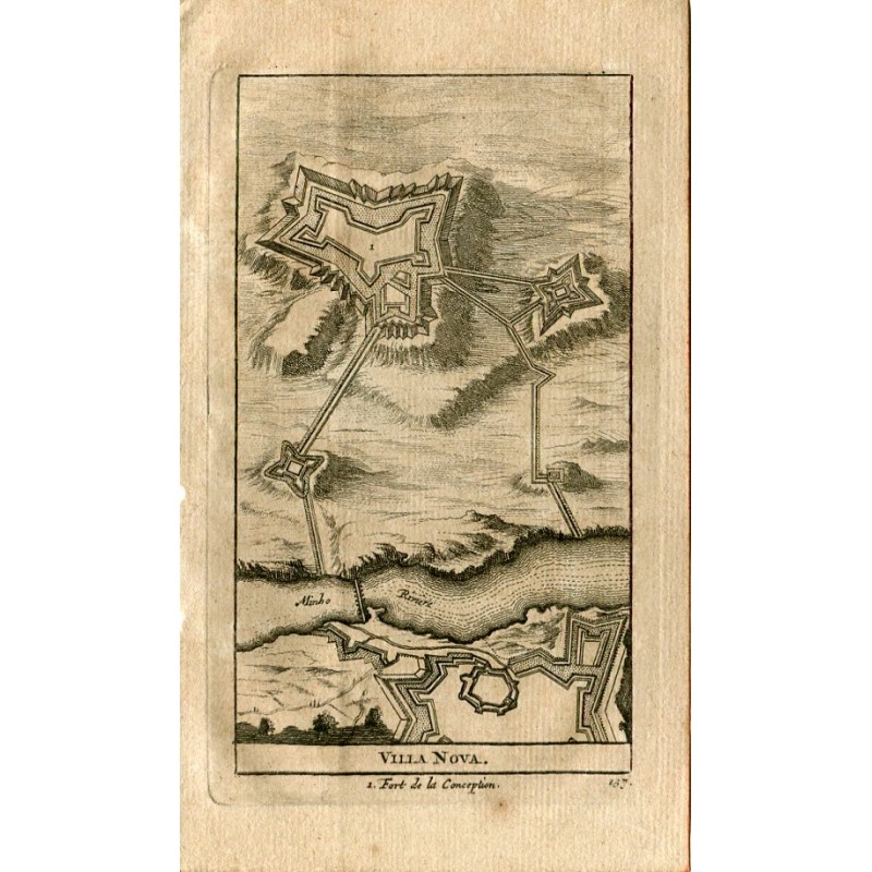 Portugal. Villa Nova, fort de la Conception grabado 1715 por Alvarez de Colmenar