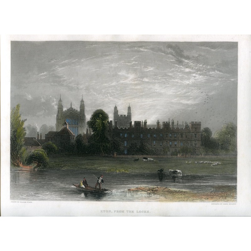 Título: Eton, desde las esclusas. Artista: a partir de obra de William Evans (1798-1877). Grabador: James Redaway (1797-1858). Fecha de producción: 1857. Medidas: 23x32,6 cm. Estado: bien.Recipiente :