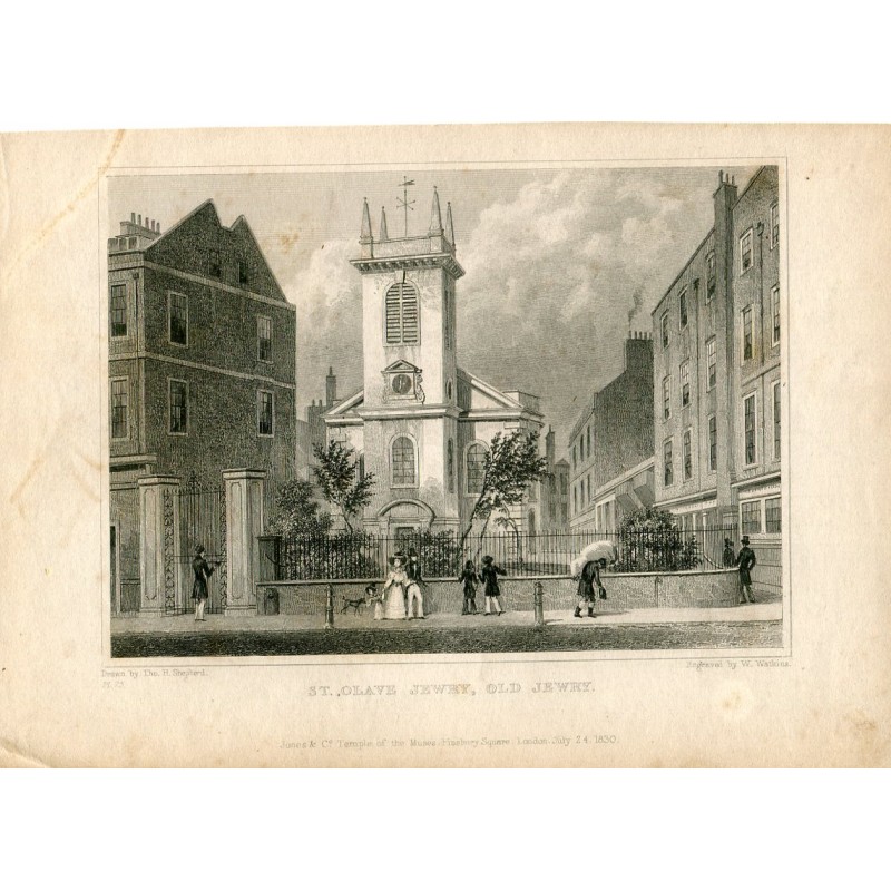 Inglaterra. St. Olave Jewry, Old Jewry. Grabado por W. Watkins, dibujó H. Shepherd.