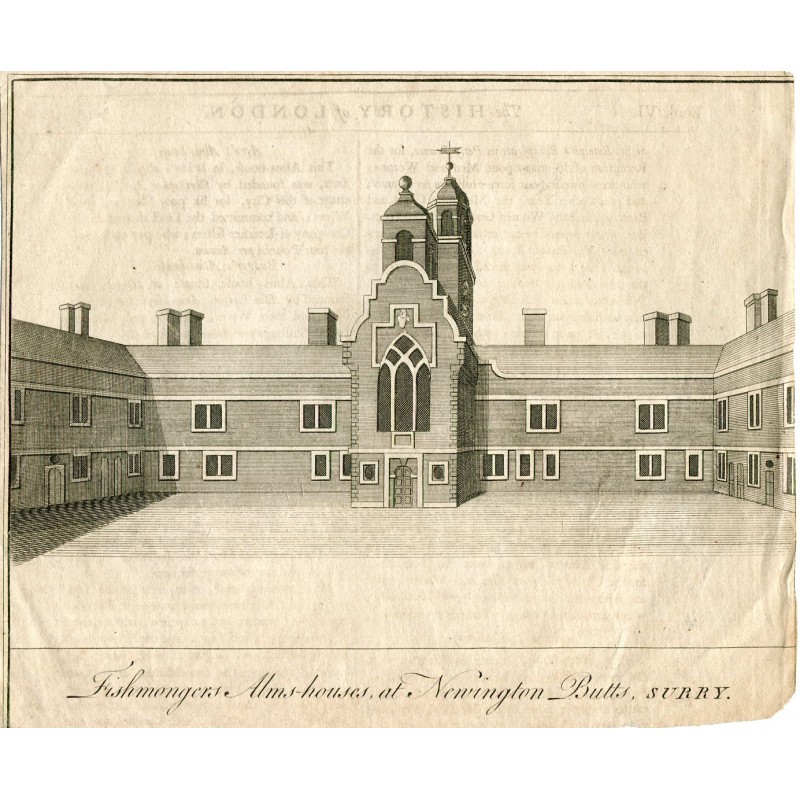 Inglaterra. Fishmongers Almshouses at Newington Butts, Surry grabado por B. Cole